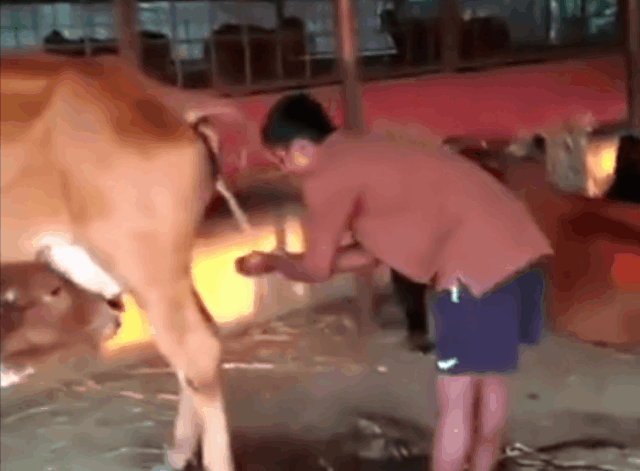 然后再拿着杯子接牛尿,单看颜色,像不像热乎乎的茶?
