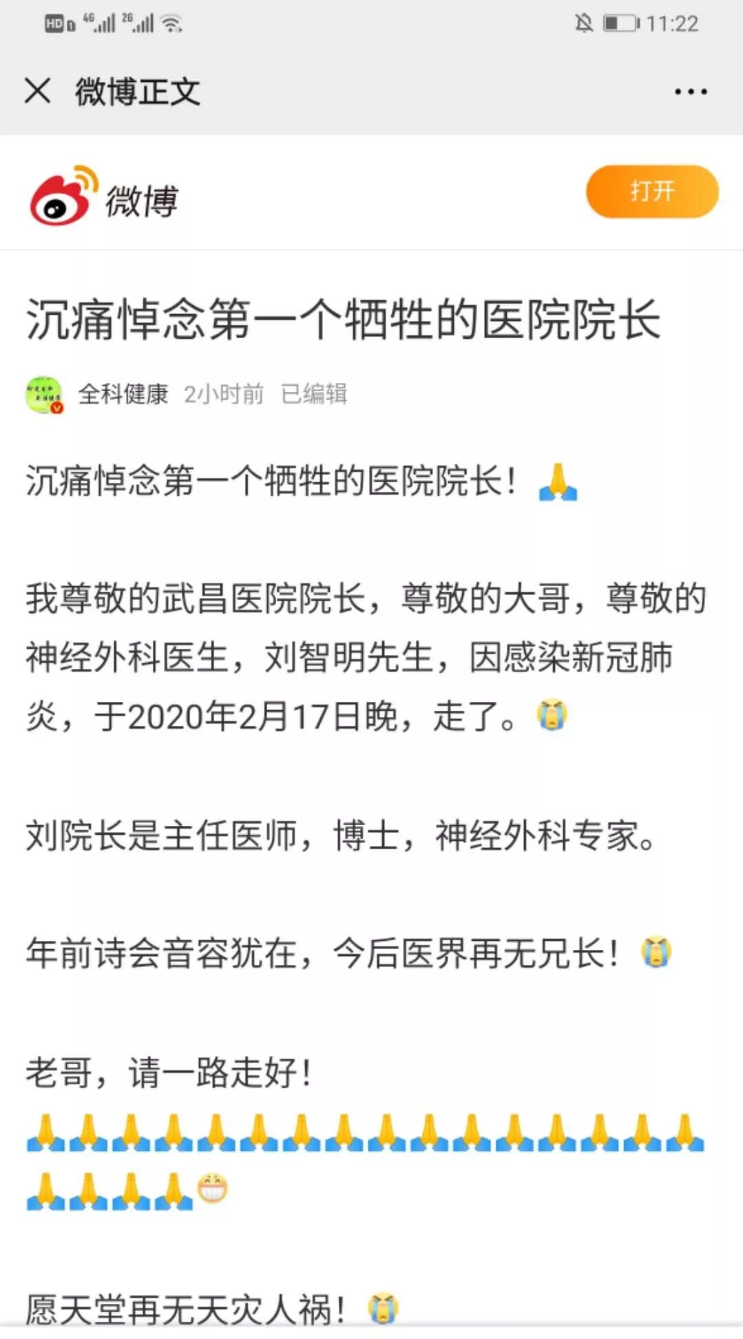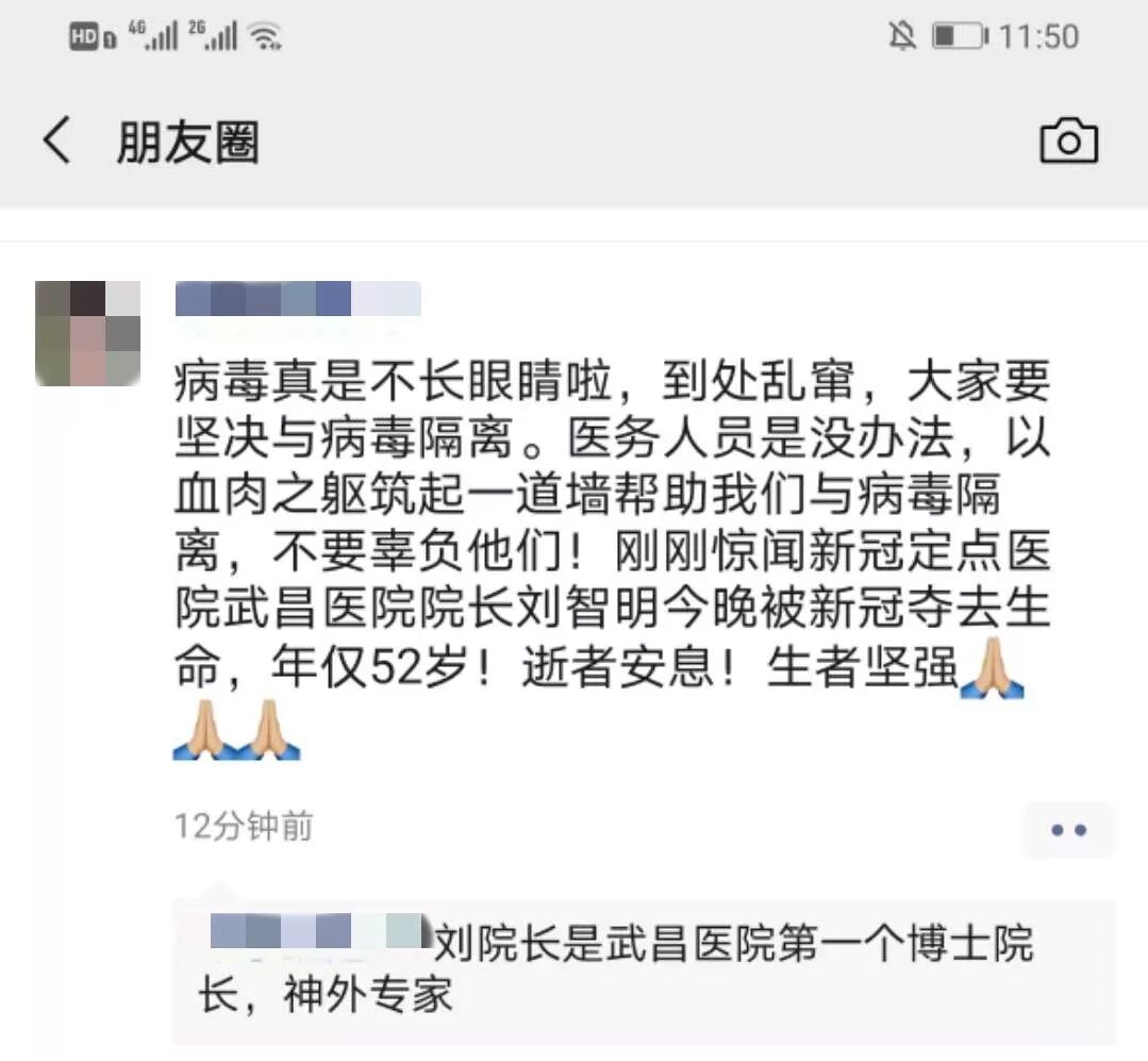 2月17日晚间,多渠道消息称,武昌医院院长刘智明因感染新冠肺炎去世。
