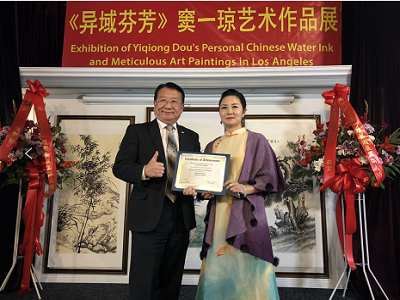 【美联社讯】由世界名人俱乐部、美国阳光教育学院、美国中华艺术宫、北京天冕堂共同举办的《异域芬芳》―中国当代水墨画艺术家窦一琼艺术作品展在洛杉矶中华艺术宫隆重举行。中外书画艺术家及爱好者百余人之多出席了此次活动。画展仪式上学生义工Oscar Peng 和Kevin Jin 以小提琴和钢琴演奏拉开了序幕。